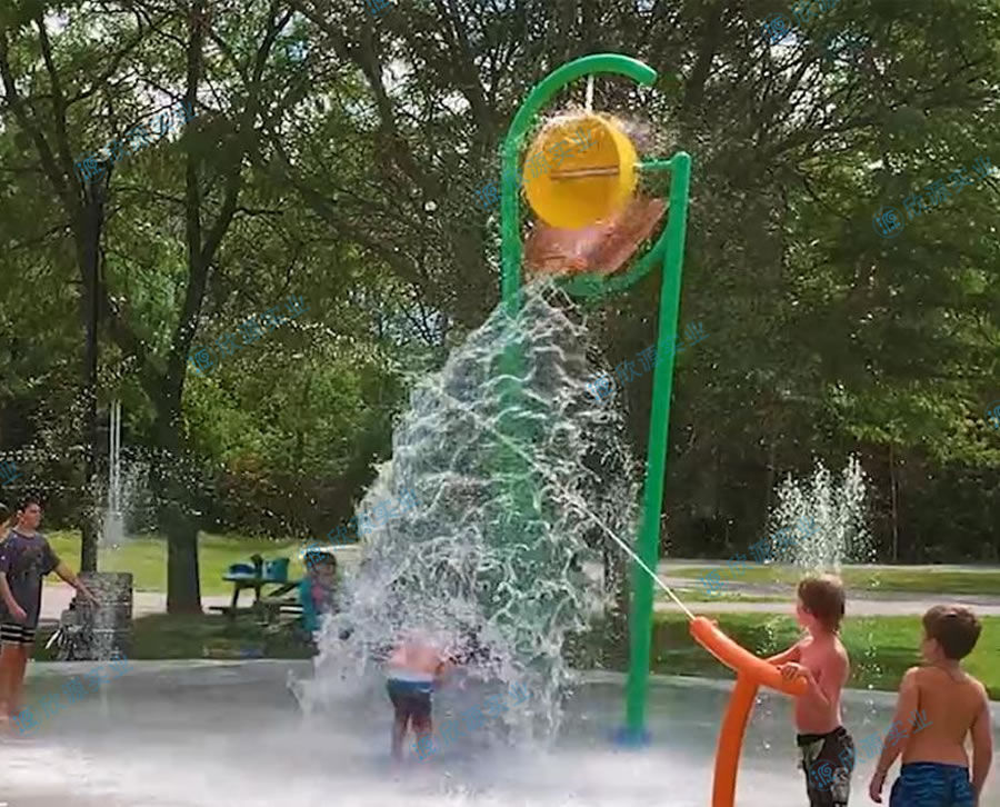 倒水桶是一種非常受歡迎的水上樂園游樂設施,為游客提供了一個既刺激又有趣的玩水體驗。它由一個大型的塑料桶或金屬桶組成,可以容納大量的水,從而制造出刺激和歡樂的玩水體驗。