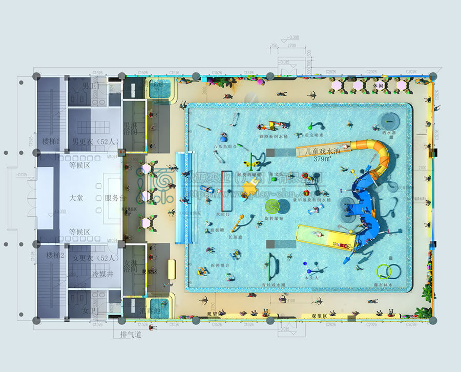 這是欣源實業定制的一個小型室內水上樂園案...