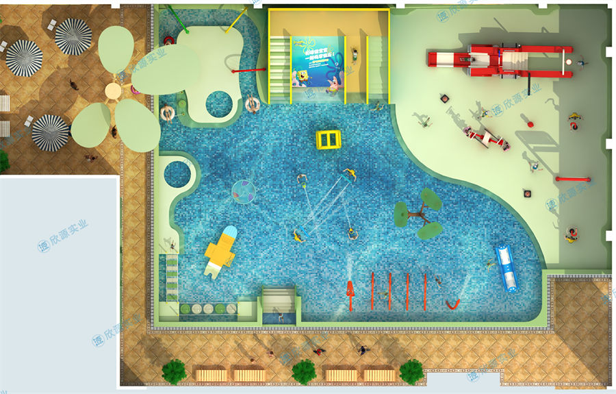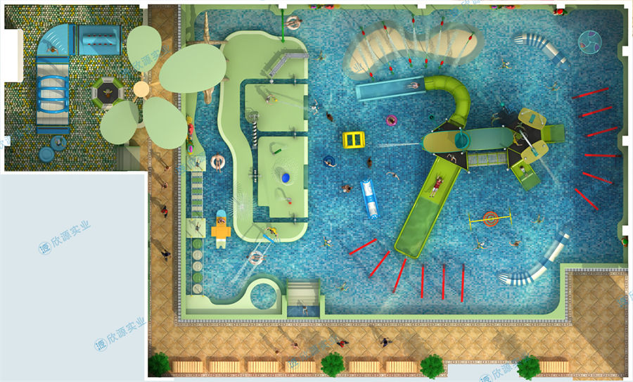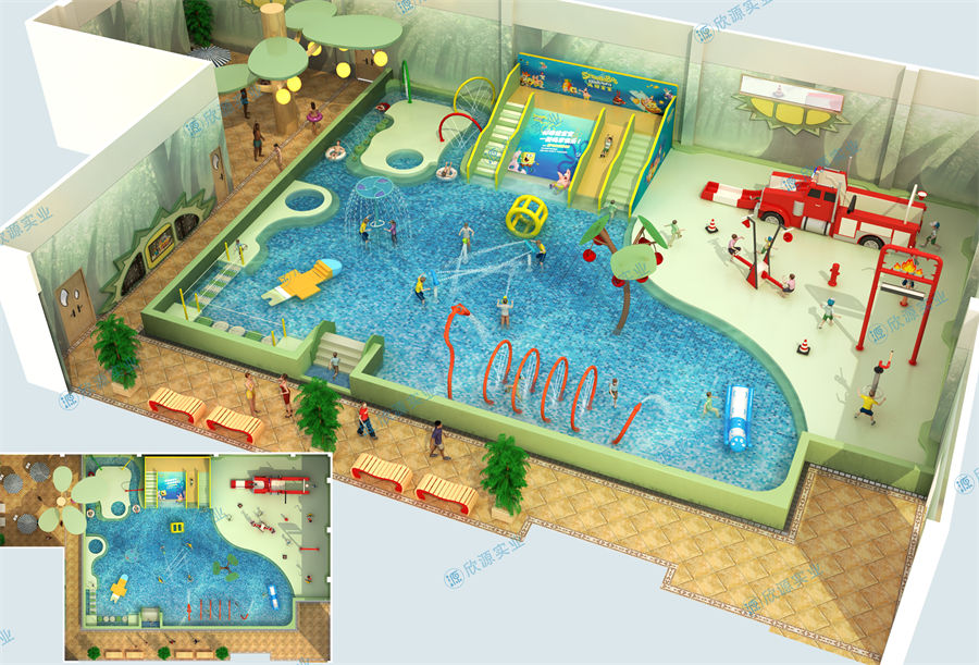 這是欣源實業定制的一個小型室內水上樂園案...